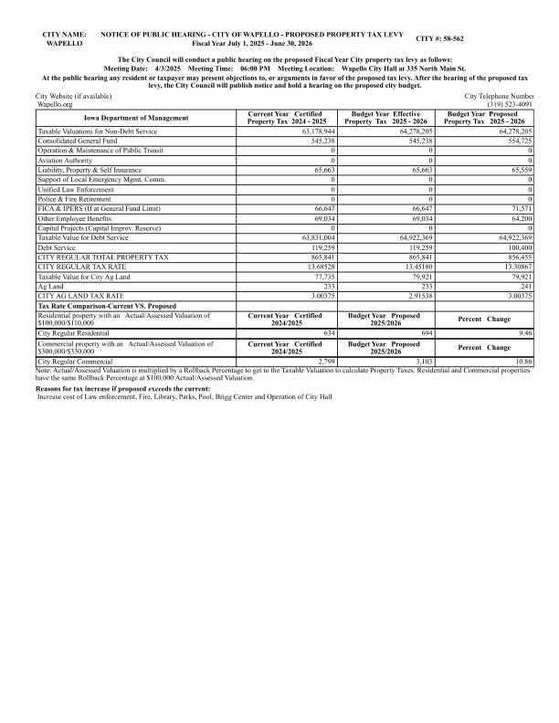 Meeting Date: 4/3/2025 Meeting Time: 06:00 PM Meeting Location: Wapello City Hall 335 North Main St.